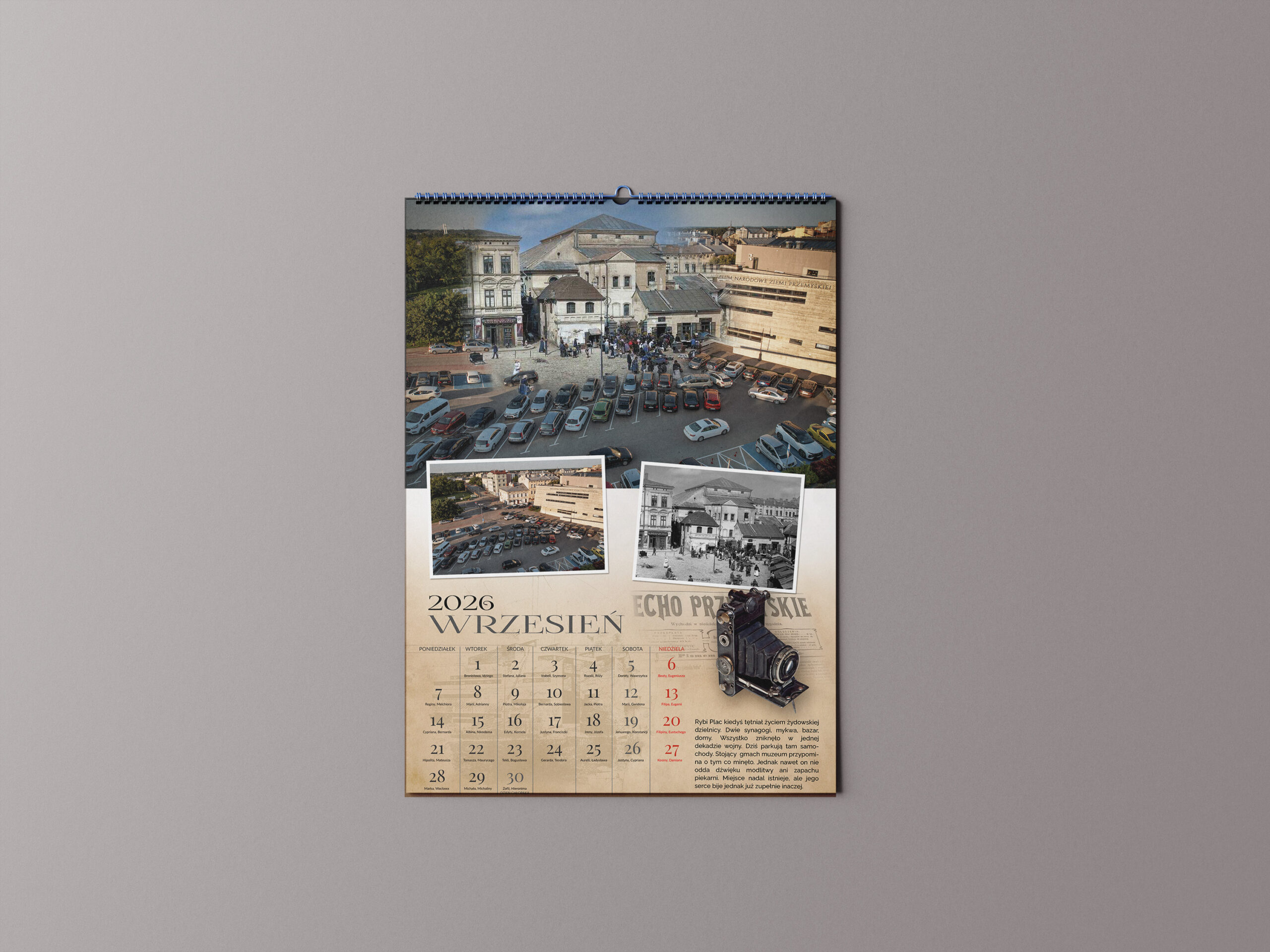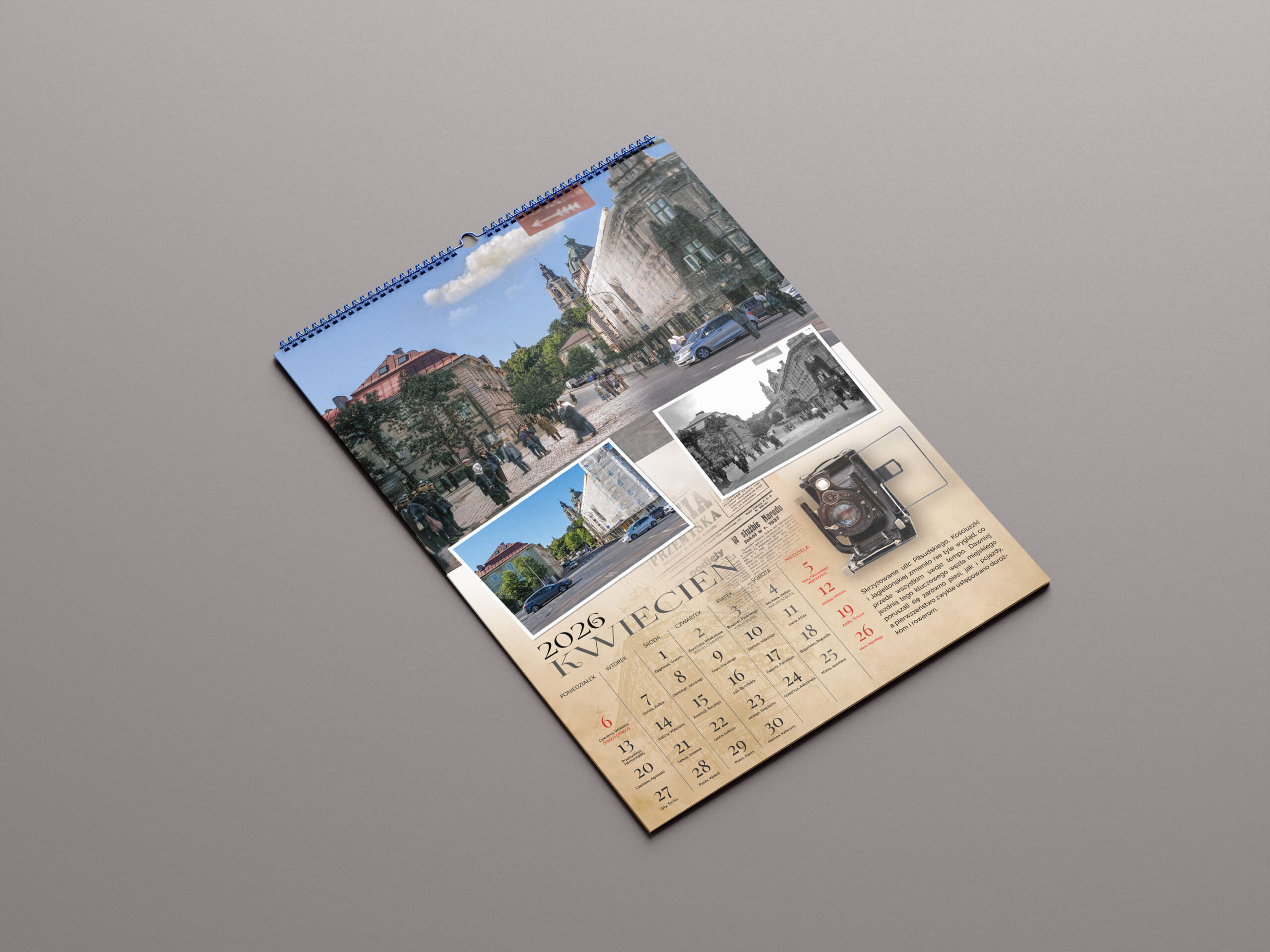 Zobacz, jak Przemyśl wyglądał kiedyś — i jak wygląda dziś. Każdy miesiąc to zestawienie archiwalnej fotografii z nowoczesnym ujęciem tego samego miejsca. Efekt? Małe, sentymentalne „okno w czasie” na Twojej ścianie.